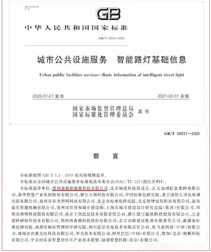 10月份,由郑州Bsports体育注册·(必一运动)官方网站新能源作为第一起草单位的国家标准《城市公共设施服务 智能路灯基础信息》,获得了国家市场监督管理总局、国家标准化管理委员会批准。
