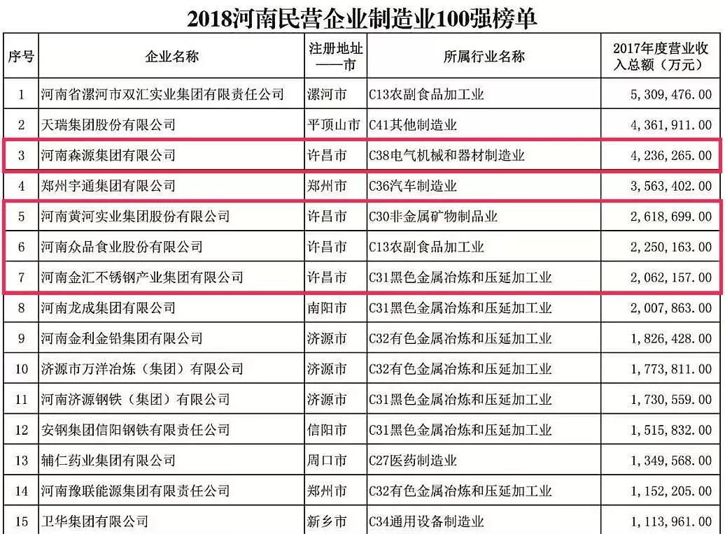 2018“河南民营企业100强”榜单揭晓,许昌市共有9家企业入围,其中我市有5家企业进入榜单。